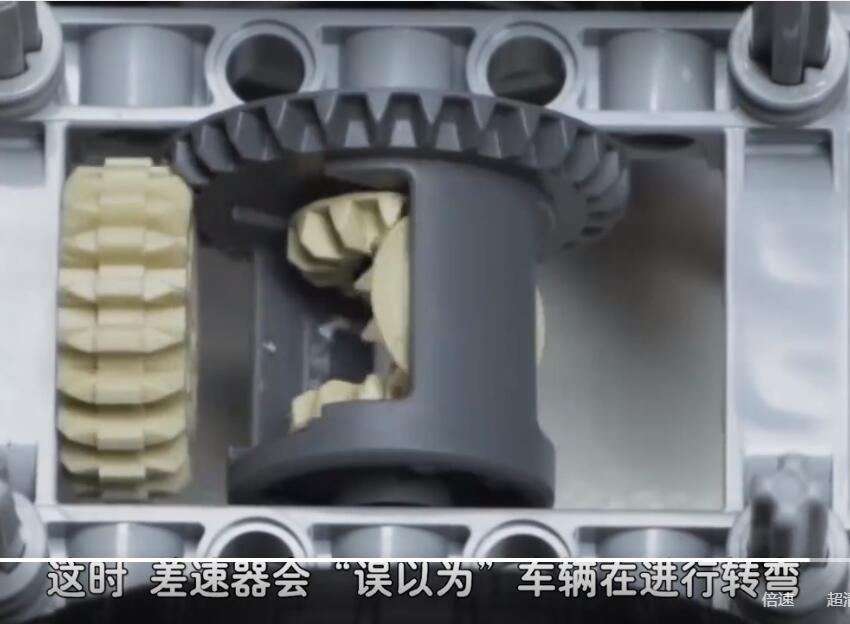 首先是直線行駛,這時行星齒輪始終保持公轉,兩邊的輪胎轉速就是一致的,而等到轉彎時,行星齒輪不僅要持續公轉還要進行自轉,這樣兩側車輪的轉速就能    。但是也帶來了一些問題,比如某次的車輪卡在了一個地方難以動彈,另一側的車輪則懸在空中,這時差速器被誤以為車輛再進行轉彎,通過行星齒輪的拼命轉動,來自轉動軸的動力被分配到了翹起來的那個車輪上,而需要脫困的車輪卻無力可施這就很尷尬了。